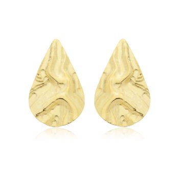Brinco Gota Folha Martelado Banhado a Ouro 18k