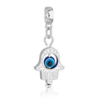 Berloque Mão Hamsa Olho Grego Banhado a Prata 925