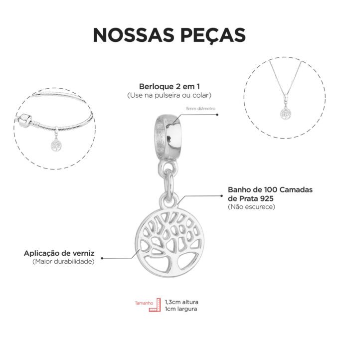 MODELO: Berloque de árvore da vida banhado com 100 milésimos de prata 925.