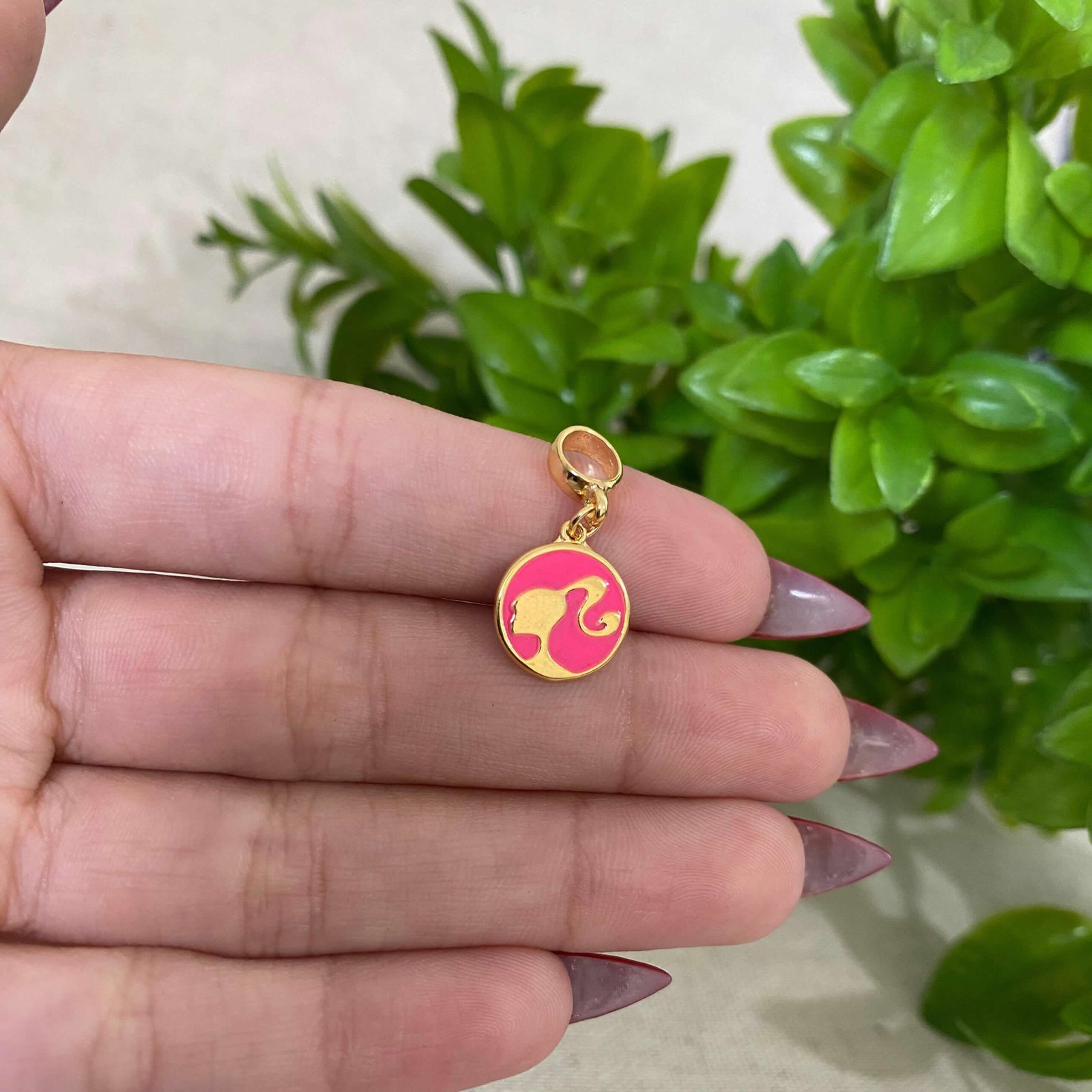 MODELO: Berloque da barbie rosa redonda banhado com 7 milésimos de ouro 18k.