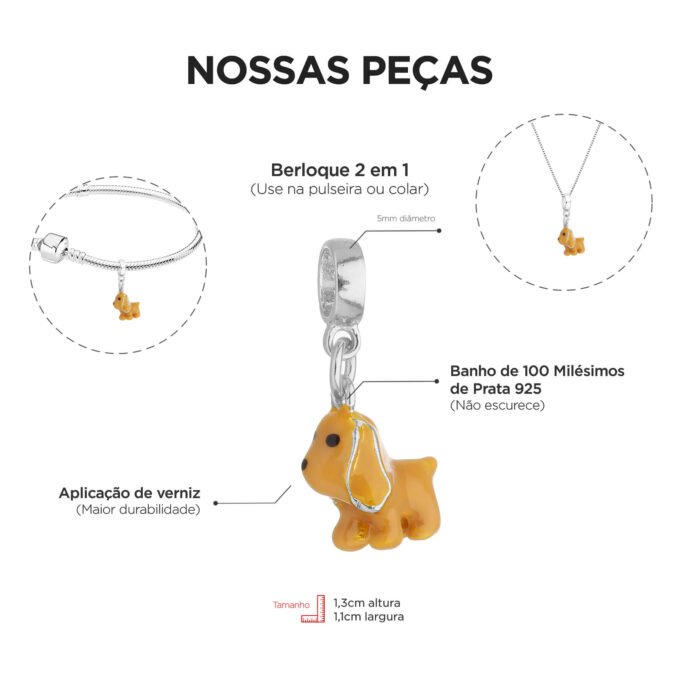 MODELO: Berloque do cachorro Cocker Spaniel banhado com 100 milésimos de prata 925.