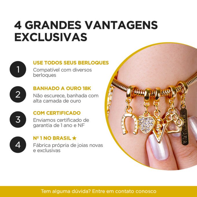 Somos uma fábrica de Semijoias Premium e a única do Brasil com berloques 2 em 1, onde você pode usar na pulseira e no colar. São mais de 1 mil modelos únicos para você escolher.