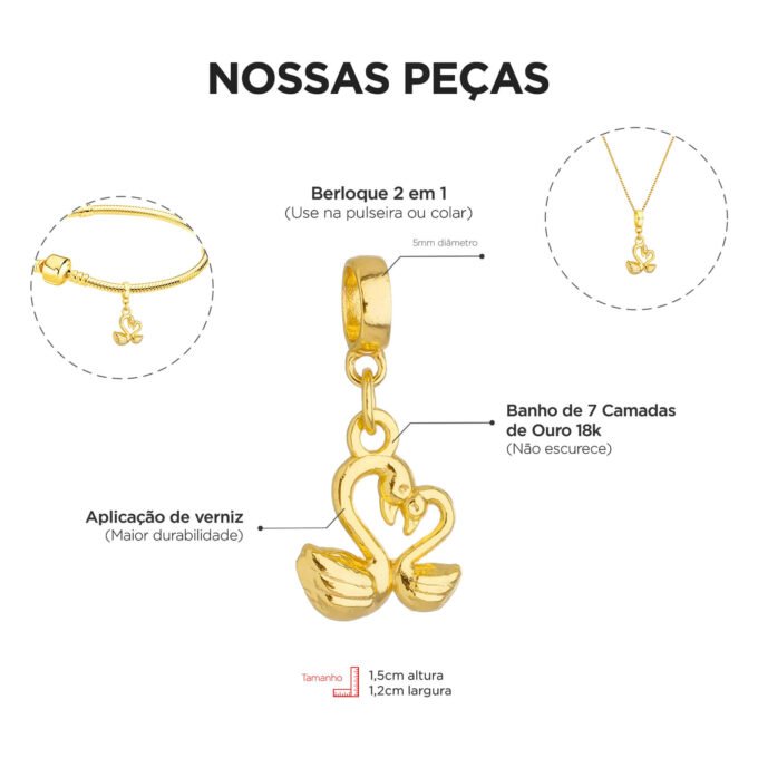 Somos uma fábrica de Semijoias Premium e a única do Brasil com berloques 2 em 1, onde você pode usar na pulseira e no colar. São mais de 1 mil modelos únicos para você escolher.