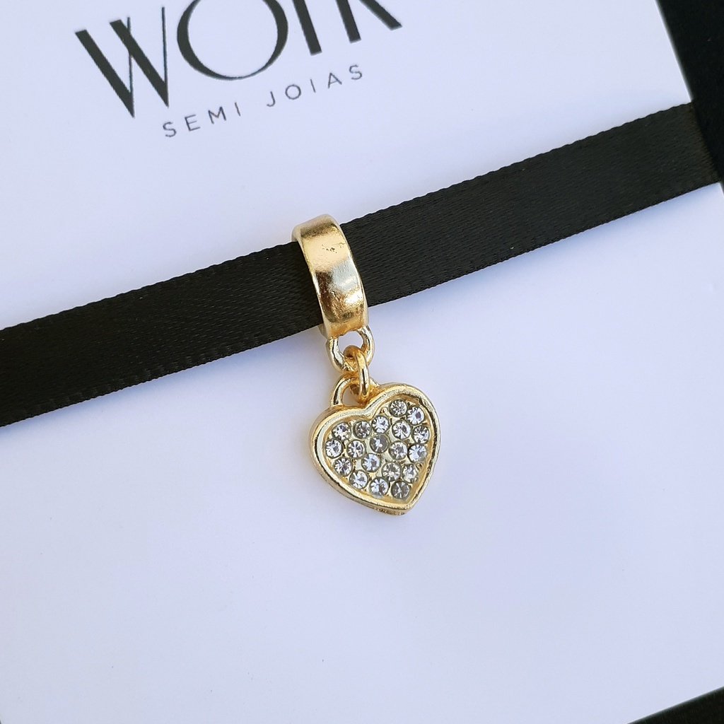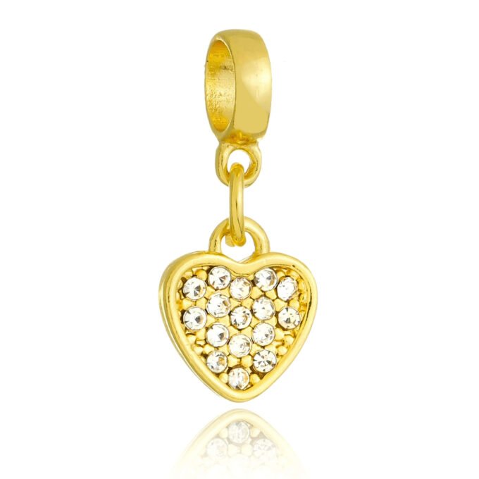MODELO: Berloque de coração dourado banhado com 7 milésimos de ouro 18k com strass.