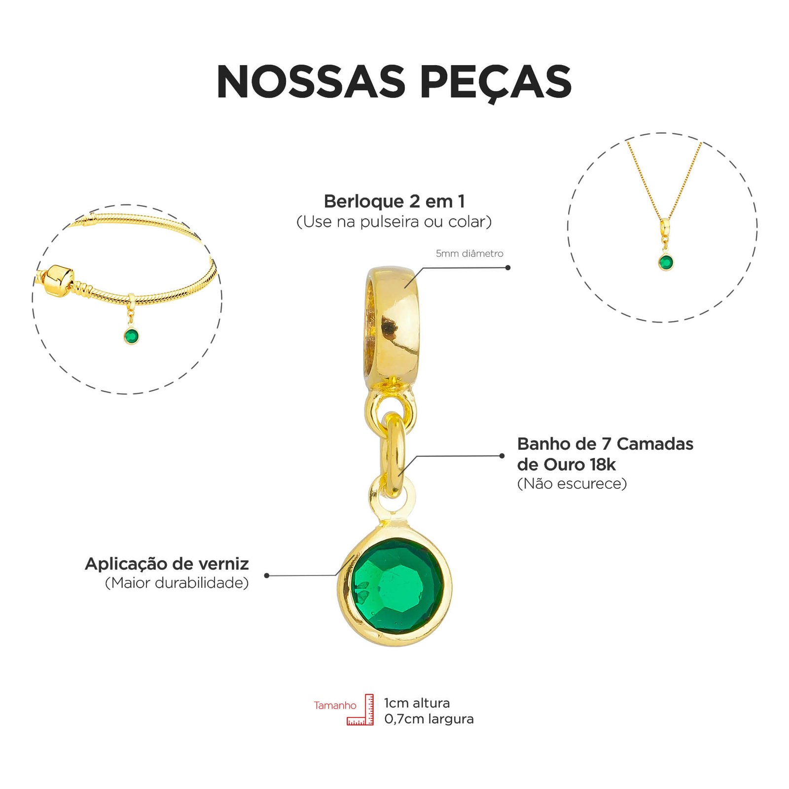 MODELO: Berloque de cristal strass verde banhado com 7 milésimos de ouro 18k.