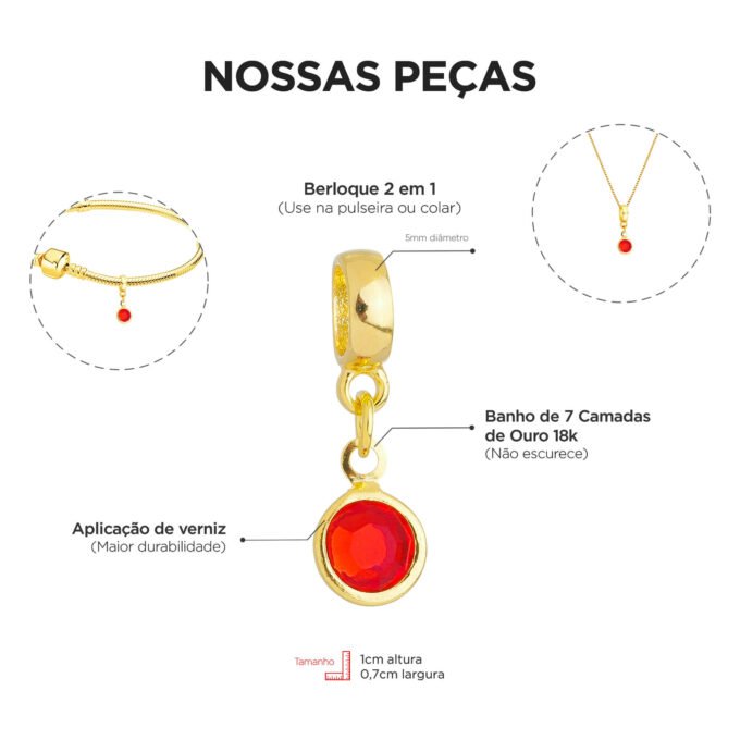 Seja o primeiro a avaliar “Berloque Cristal Vermelho Banhado a Ouro 18k”