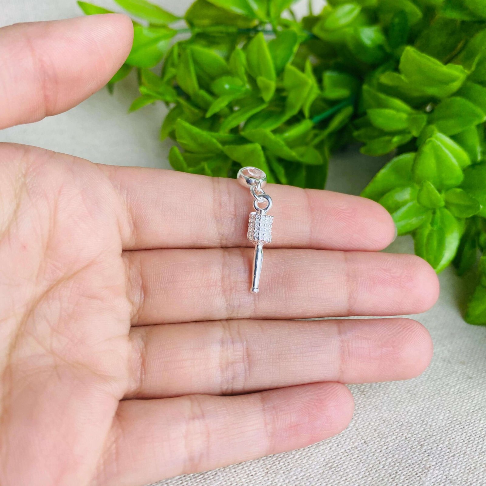 MODELO: Berloque de escova de cabelo banhado com 100 milésimos de prata 925.