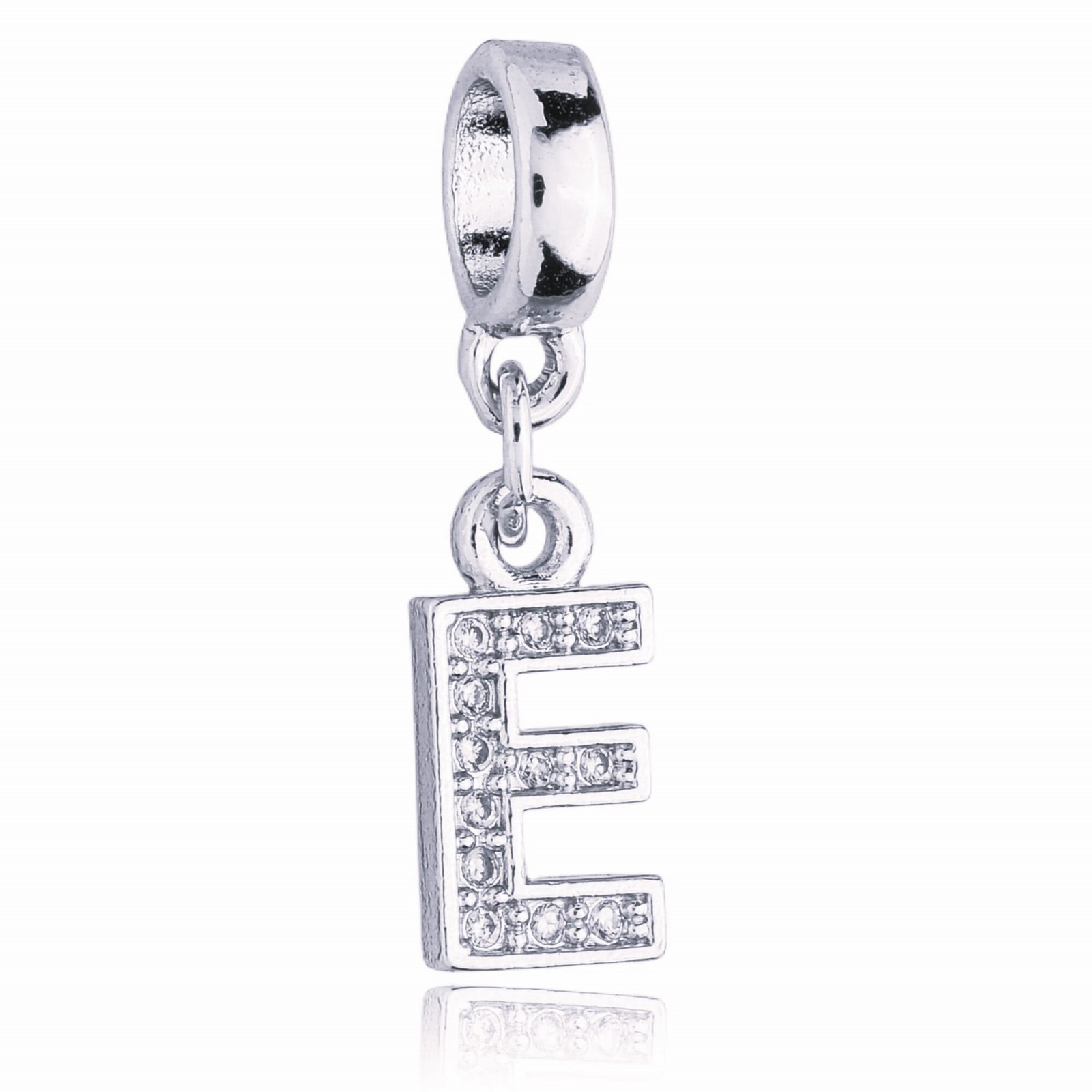 MODELO: Berloque Letra E Cravejada com Zircônia banhado com 100 milésimos de Prata 925.