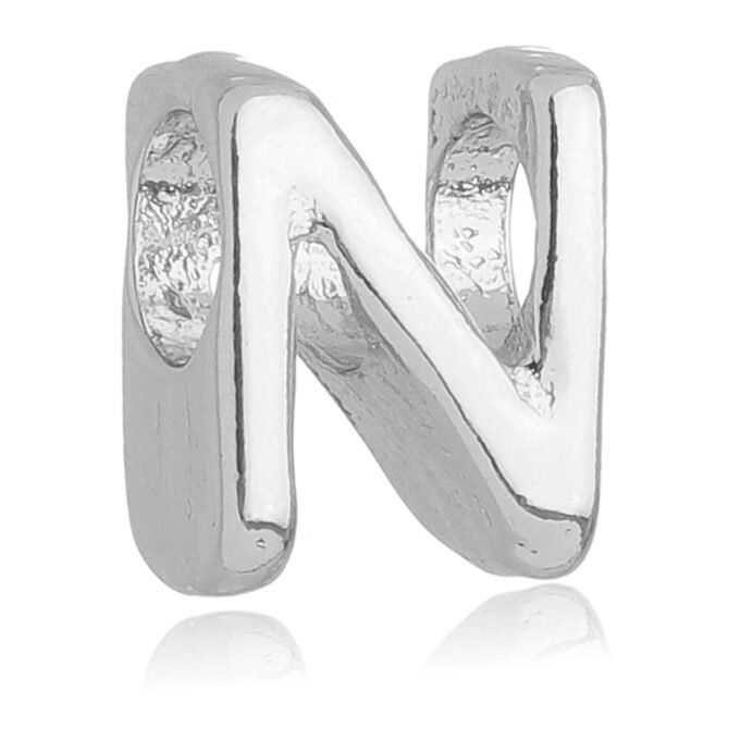 MODELO: Berloque de letra N para pulseira banhada com 100 milésimos de prata 925.