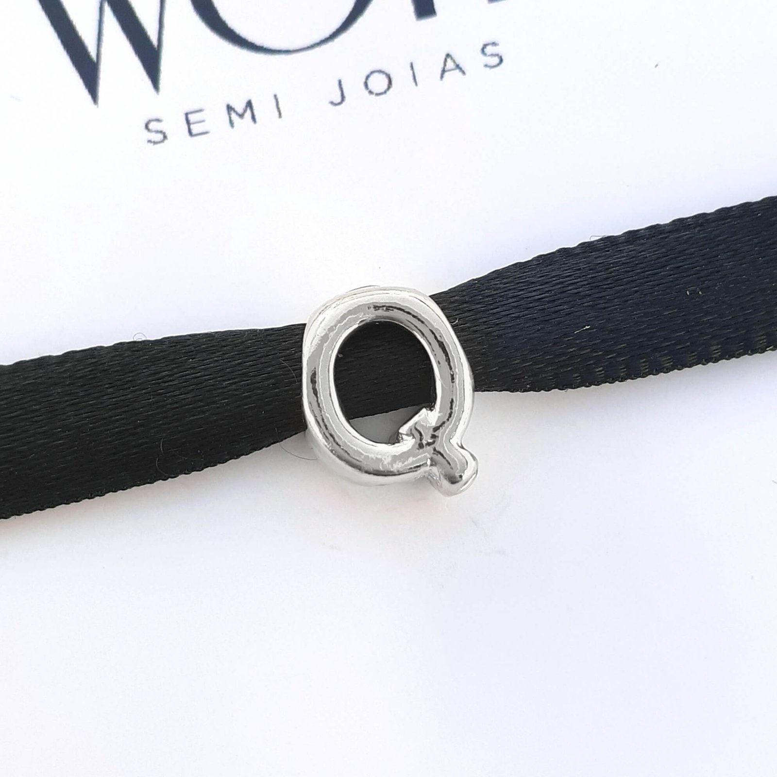 MODELO: Berloque de letra Q para pulseira banhada com 100 milésimos de prata 925.