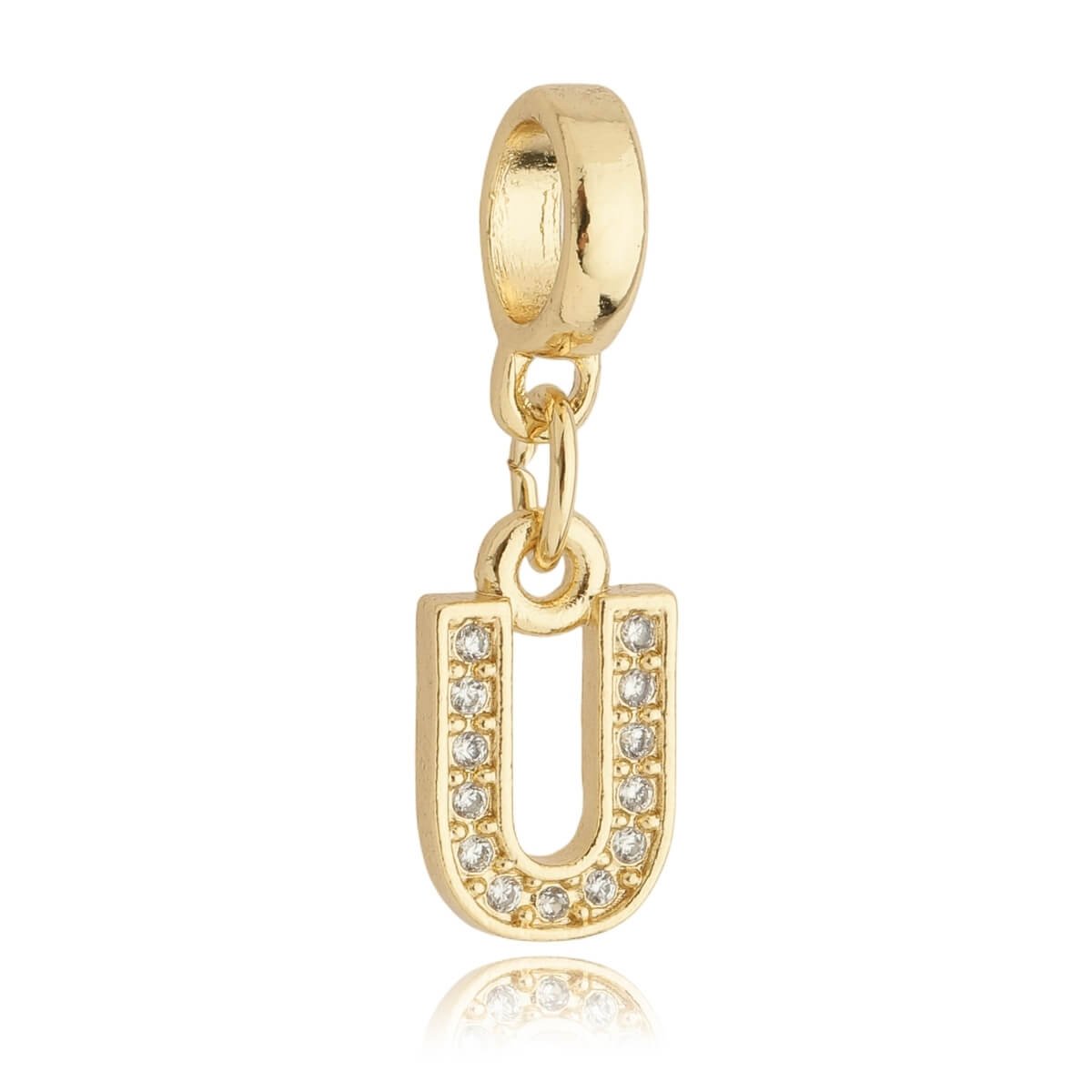 Berloque Letra U Cravejada Zircônia Banhado a Ouro 18k