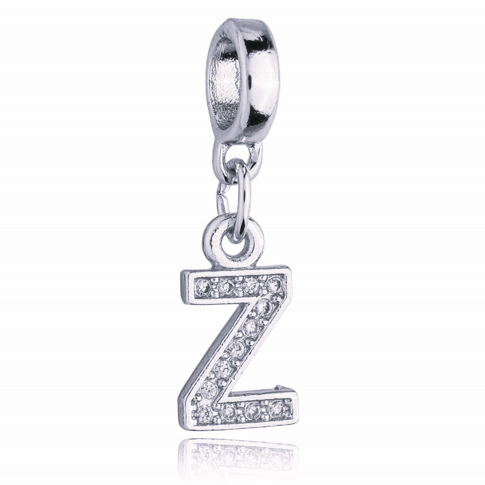 MODELO: Berloque Letra Z Cravejada com Zircônia banhado com 100 milésimos de Prata 925.