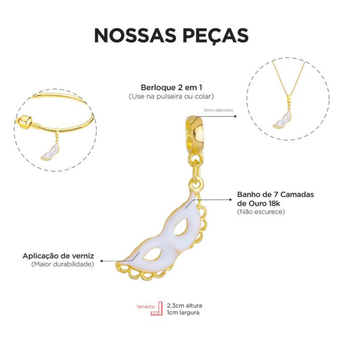 MODELO: Berloque de máscara fantasia banhado com 7 milésimos de ouro 18k.