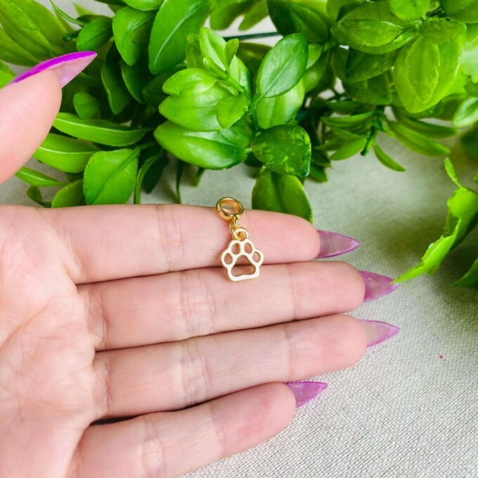MODELO: Berloque de patinha de cachorro vazado dourado banhado com 7 milésimos de ouro 18k.