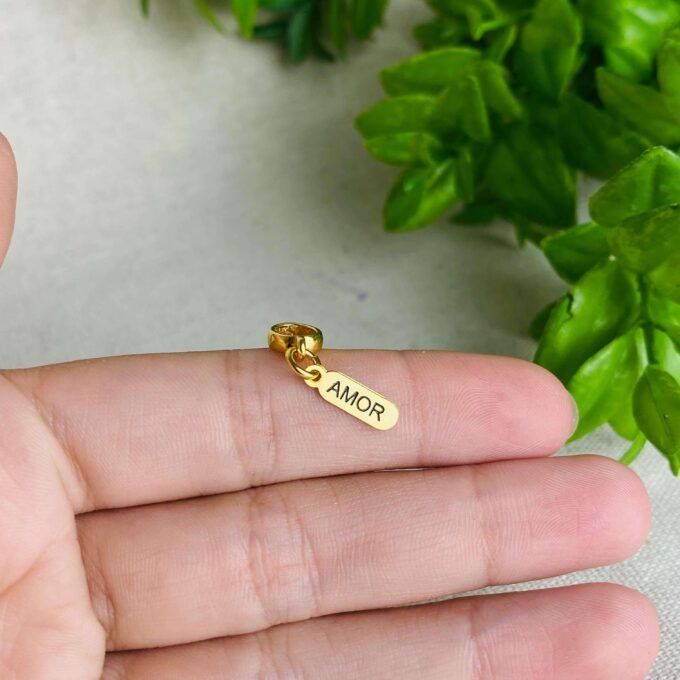 MODELO: Berloque plaquinha de Amor banhado com 100 milésimos de prata 925.