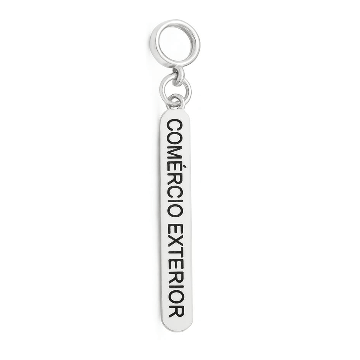 MODELO: Berloque plaquinha de Comércio Exterior banhado com 100 milésimos de Prata 925.