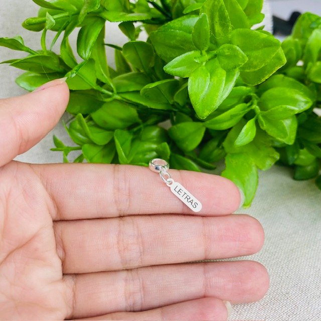 MODELO: Berloque plaquinha de Letras banhado com 100 milésimos de prata 925.