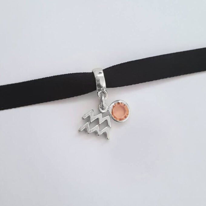 MODELO: Berloque de signo aquário com strass banhado com 100 milésimos de Prata 925.