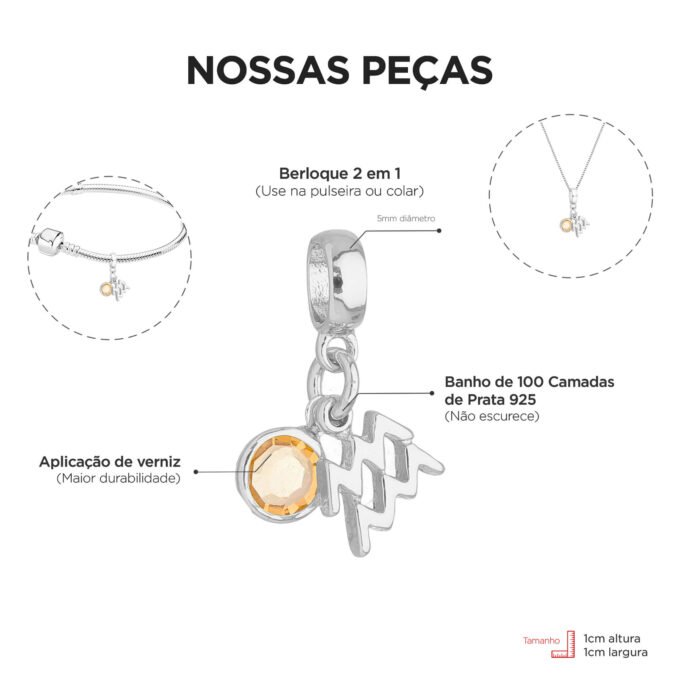 Somos uma fábrica de Semijoias Premium e a única do Brasil com berloques 2 em 1, onde você pode usar na pulseira e no colar. São mais de 1 mil modelos únicos para você escolher.