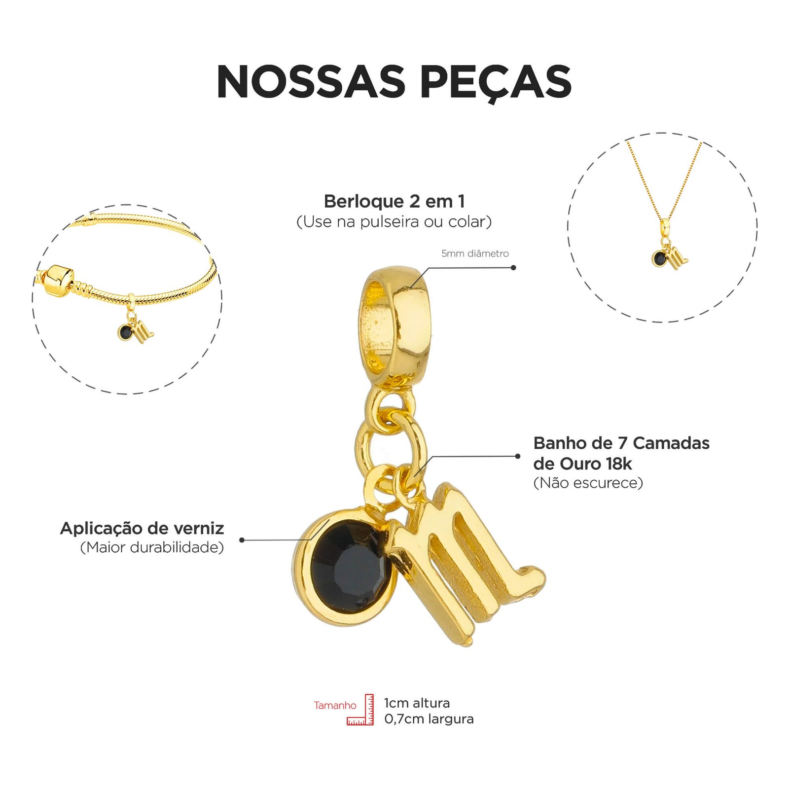 MODELO: Berloque de signo escorpião com strass para pulseira banhada com 7 milésimos de ouro 18k.