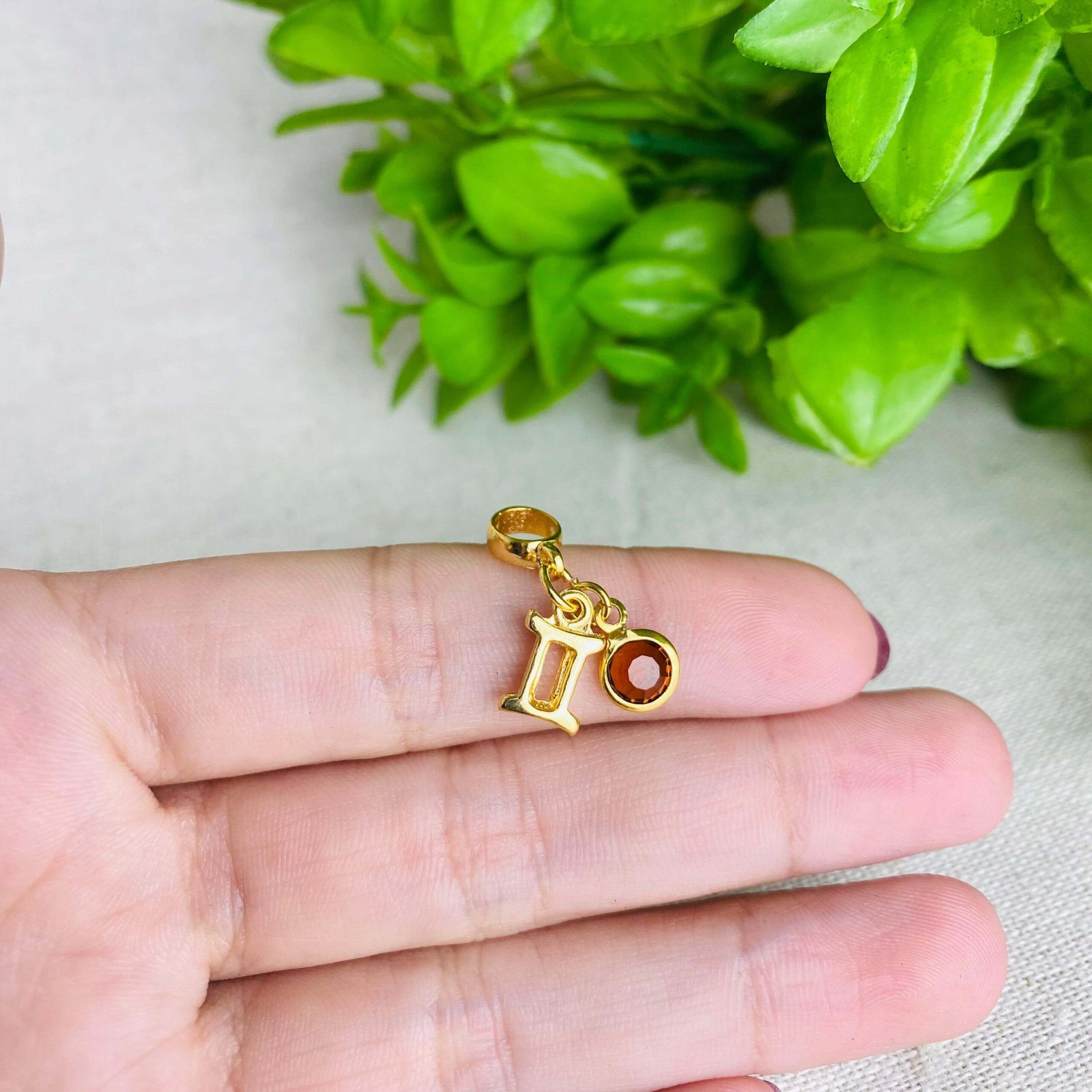 MODELO: Berloque de signo Gêmeos com strass para pulseira banhada com 100 milésimos de prata 925.