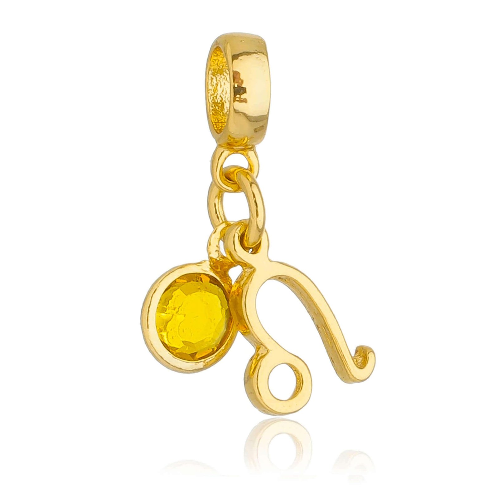 MODELO: Berloque de signo leão com strass para pulseira banhada com 7 milésimos de ouro 18k.