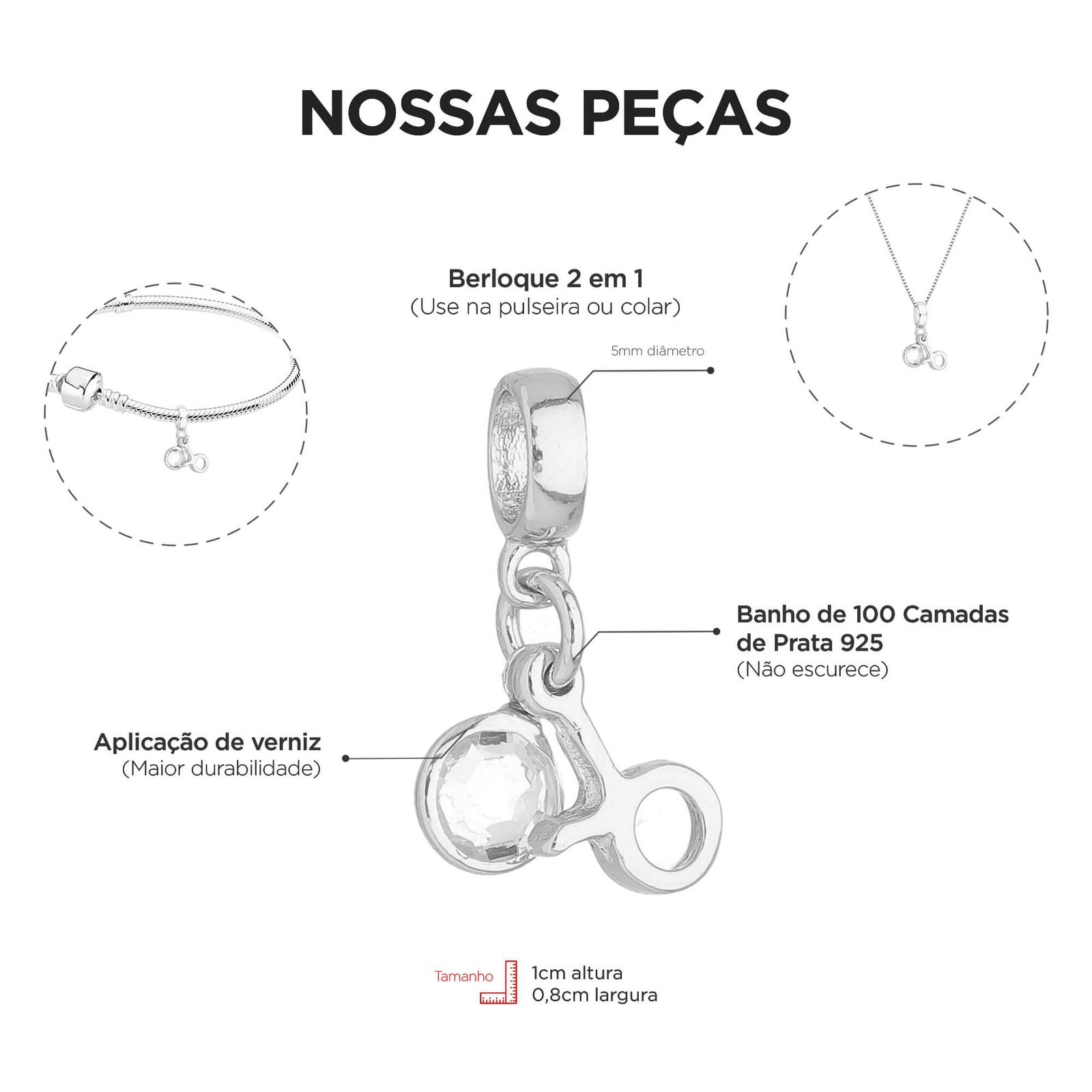 MODELO: Berloque de signo Touro com strass para pulseira banhada com 100 milésimos de prata 925.