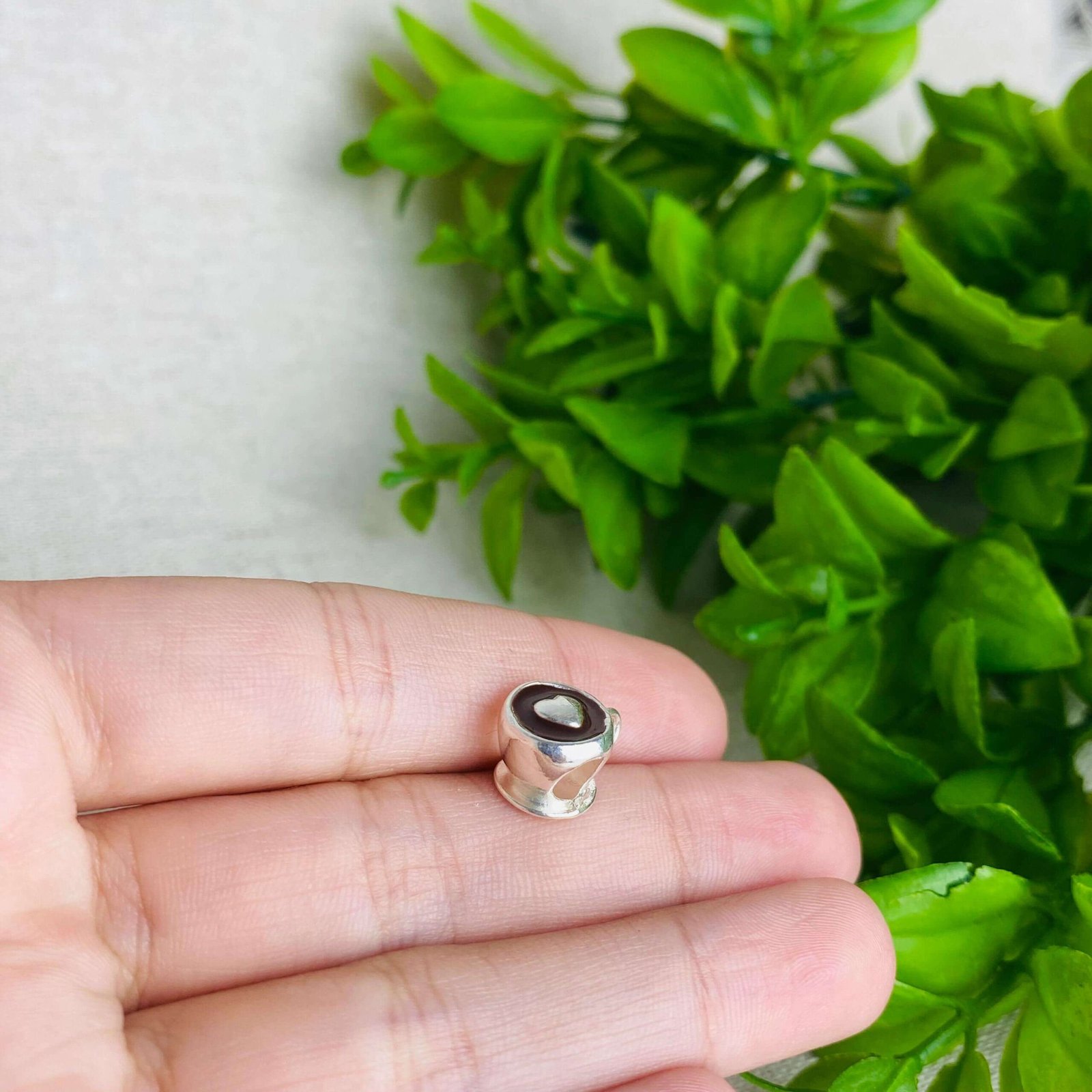 MODELO: Berloque separador de xícara de café banhada com 100 milésimos de prata 925.