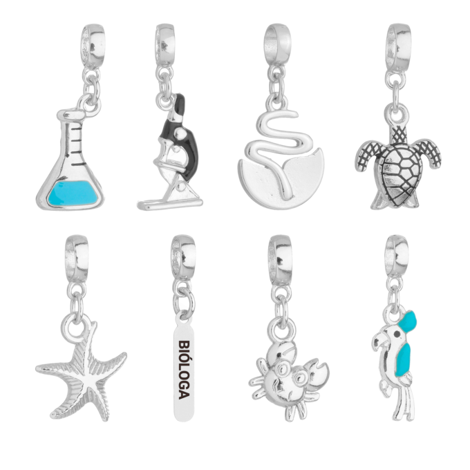 MODELO: Diversos berloques de biologia banhados com 100 milésimos de Prata 925.