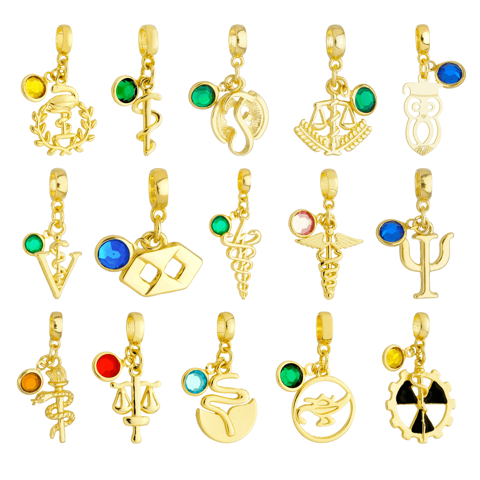 MODELO: Diversos berloques de profissões com cristal strass banhados com 7 milésimos de ouro 18k.