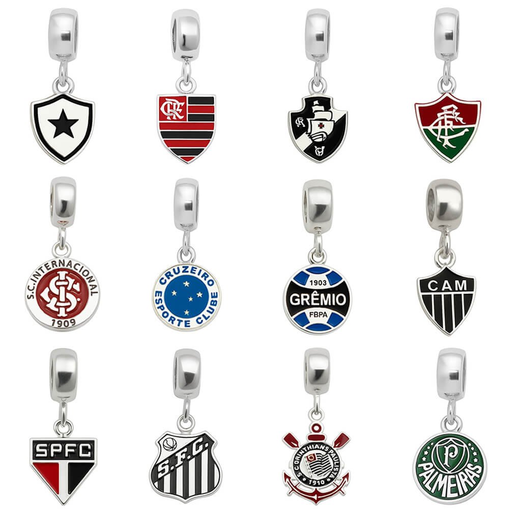 MODELO: Diversos berloques de Times de Futebol banhados com 100 milésimos de Prata 925.