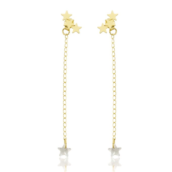 MODELO: Brinco 3 Estrelas com Corrente banhado com 7 milésimos de ouro 18k.