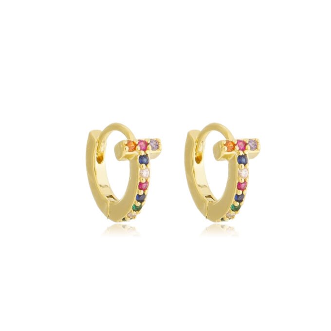 MODELO: Brinco Argola Cravejada Biocolor Dourado banhado com 7 milésimos de ouro 18k.