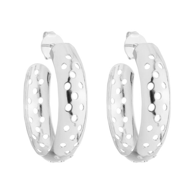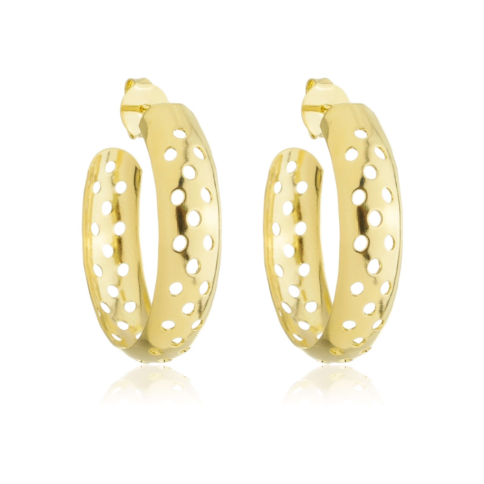 MODELO: Brinco Argola Furos banhado com 100 milésimos de prata 925.