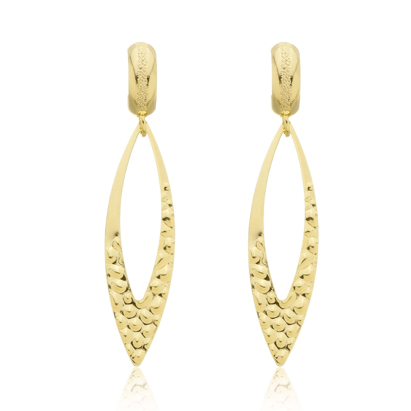 MODELO: Brinco Argola Gota Texturizada Dourado banhado com 100 milésimos de prata 925.