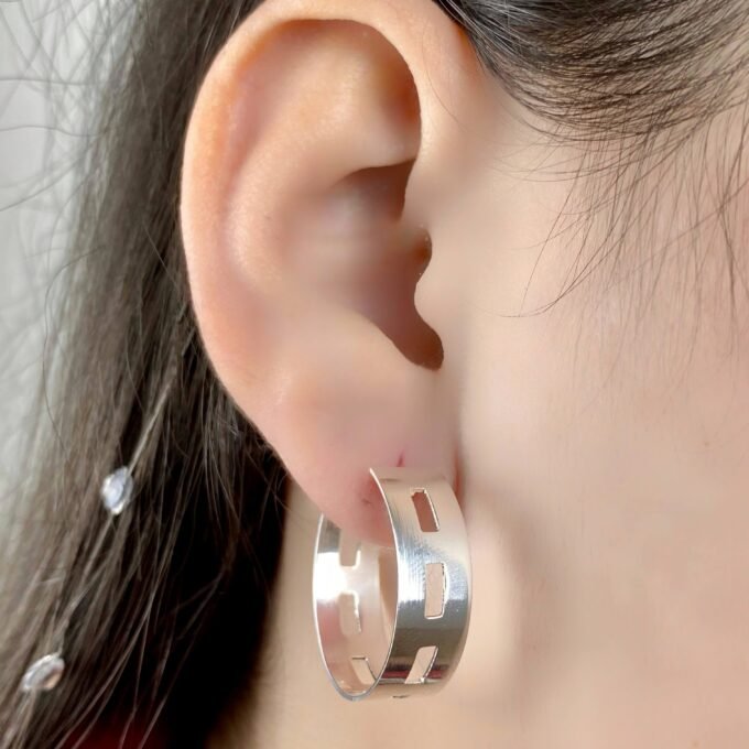 MODELO: Brinco Argola Larga Vazada Dourado banhado com 100 milésimos de prata 925.