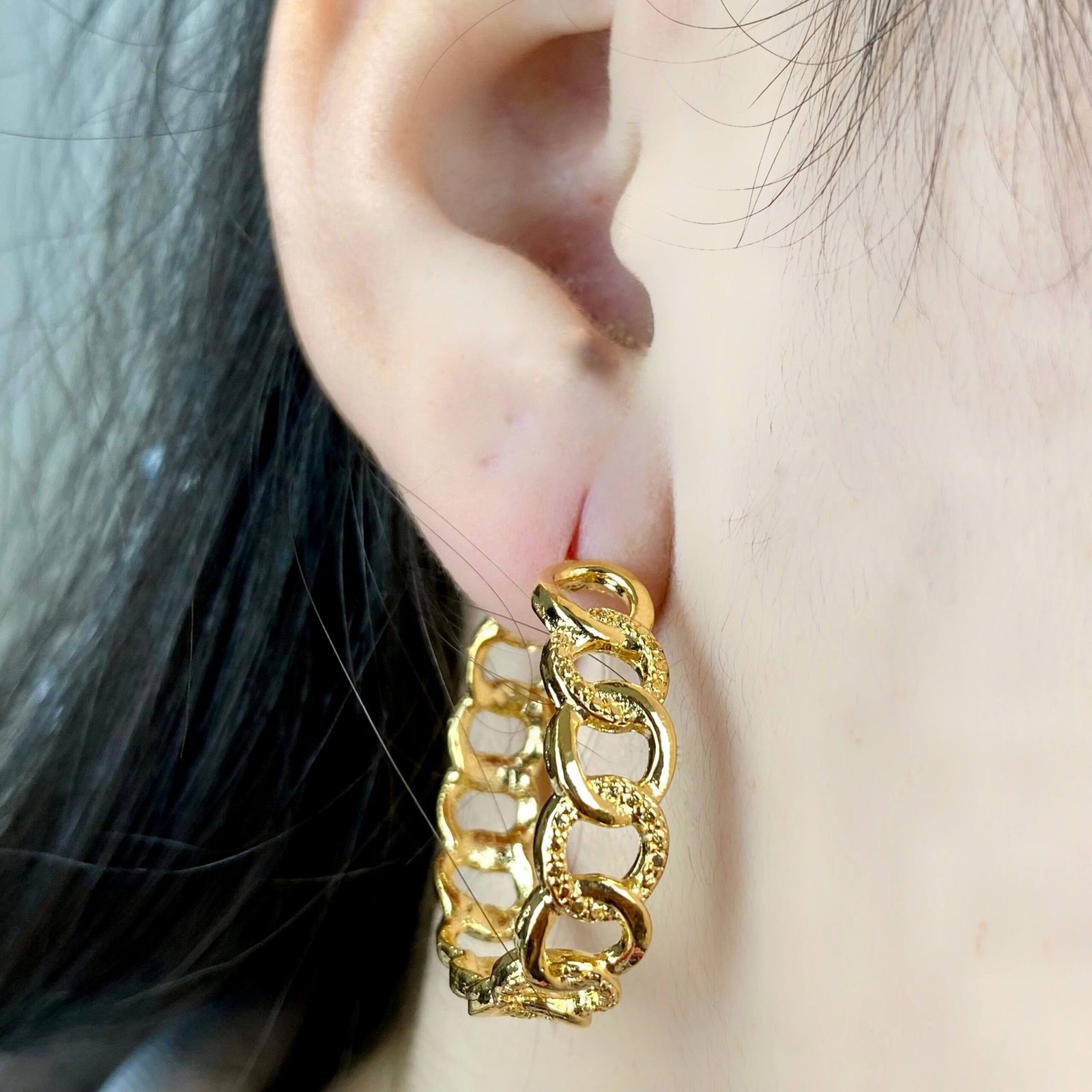 MODELO: Brinco Argola Modelo Corrente Dourado banhado com 7 milésimos de ouro 18k.