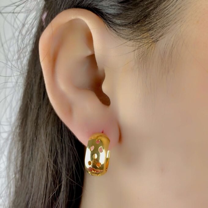 Seja o primeiro a avaliar “Brinco Argola Poa Vazado Banhado a Ouro 18k”