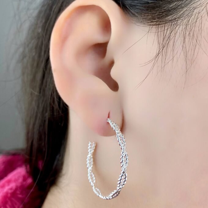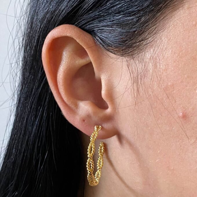MODELO: Brinco Argola Trançada banhado com 100 milésimos de prata 925.