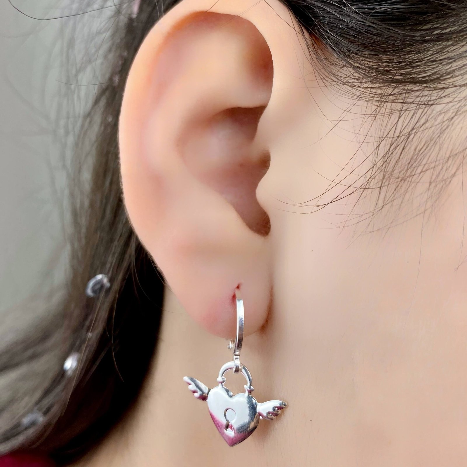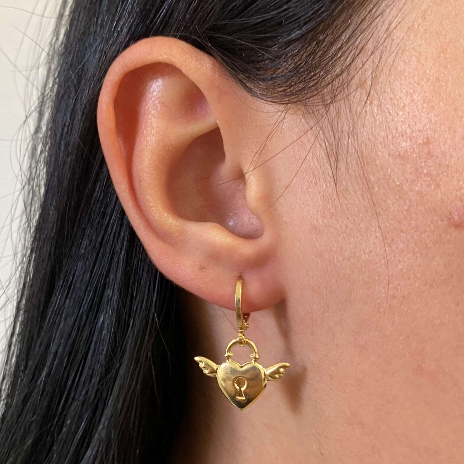 MODELO: Brinco Argolinha Coração Asa Anjo banhado com 7 milésimos de ouro 18k.