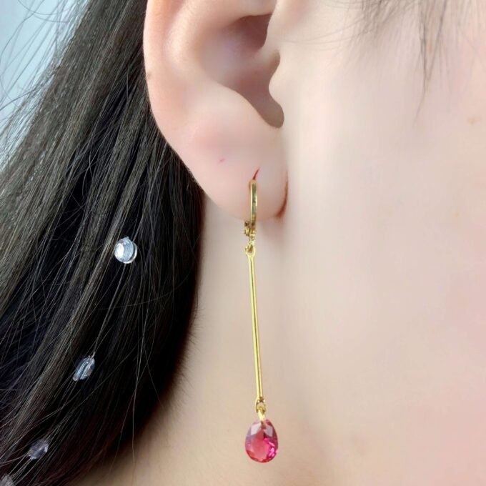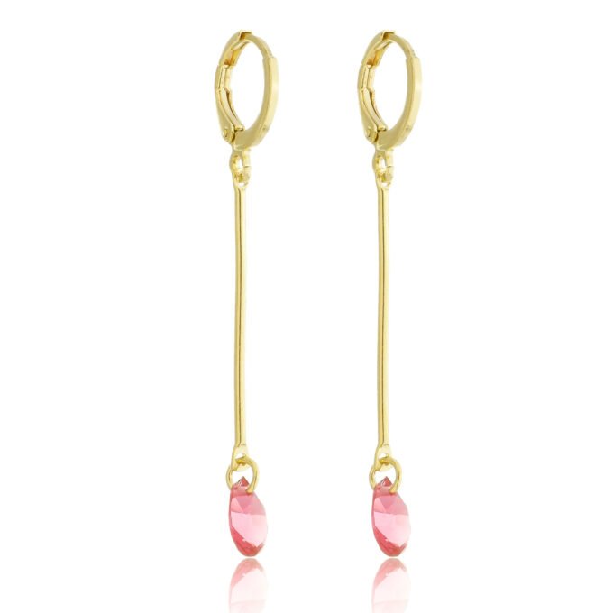 MODELO: Brinco Argolinha Fio Com Pingente Zircônia Rosa Banhado com 7 milésimos de ouro 18k.