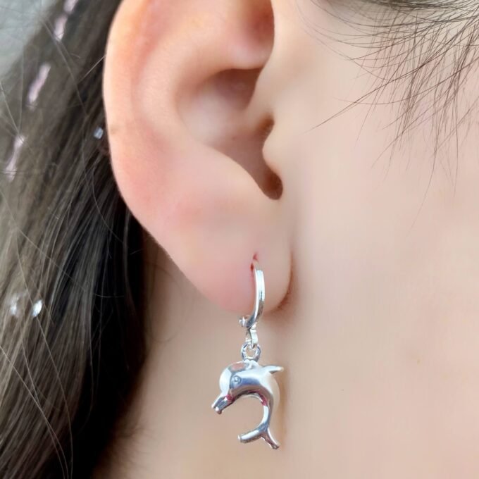MODELO: Brinco Argolinha Golfinho Mar banhado com 100 milésimos de prata 925.