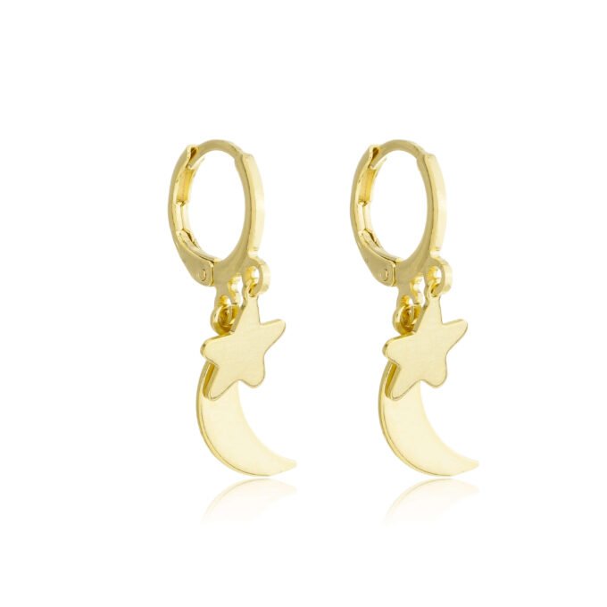 MODELO: Brinco Argolinha Lua Estrela Dourado banhado com 7 milésimos de ouro 18k.