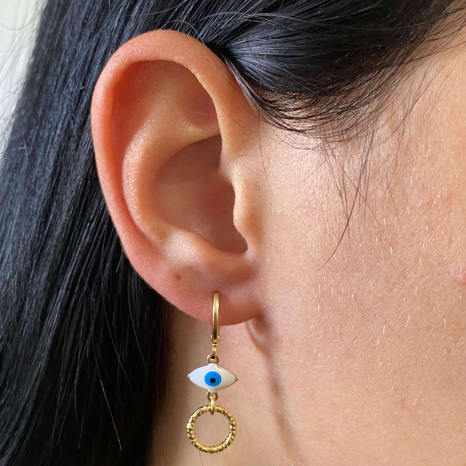 MODELO: Brinco Argolinha Olho Grego Dourado banhado com 7 milésimos de ouro 18k.