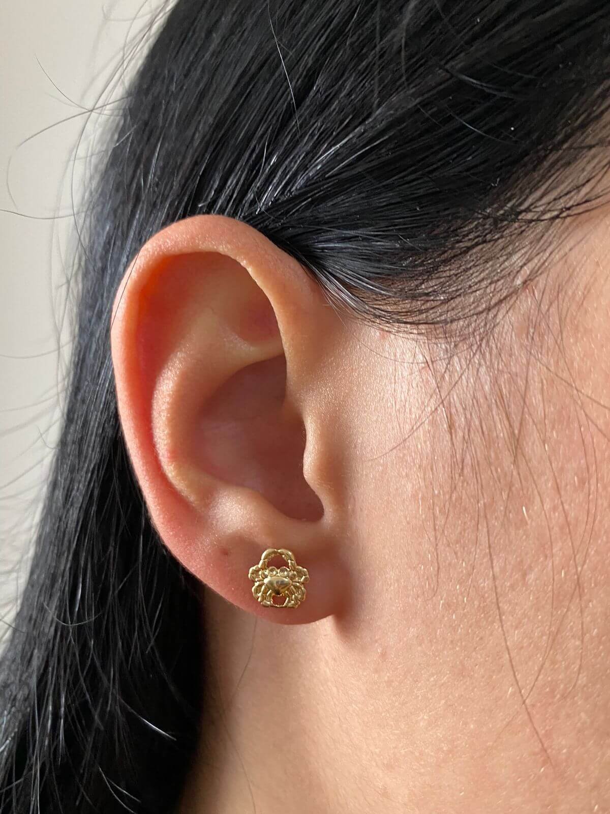 MODELO: Brinco Caranguejo Siri Dourado banhado com 100 milésimos de prata 925.