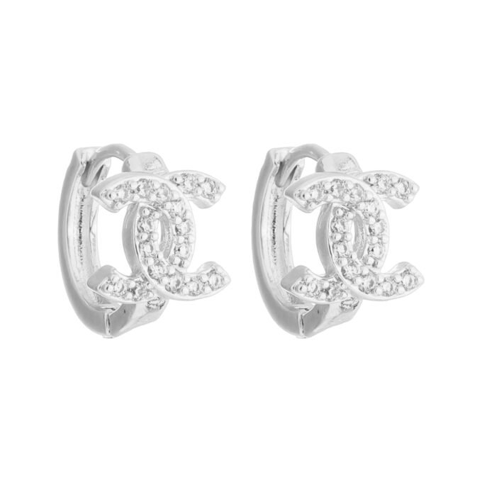 MODELO: Brinco Chanel Cravejado Zirconia Dourado banhado com 100 milésimos de prata 925.