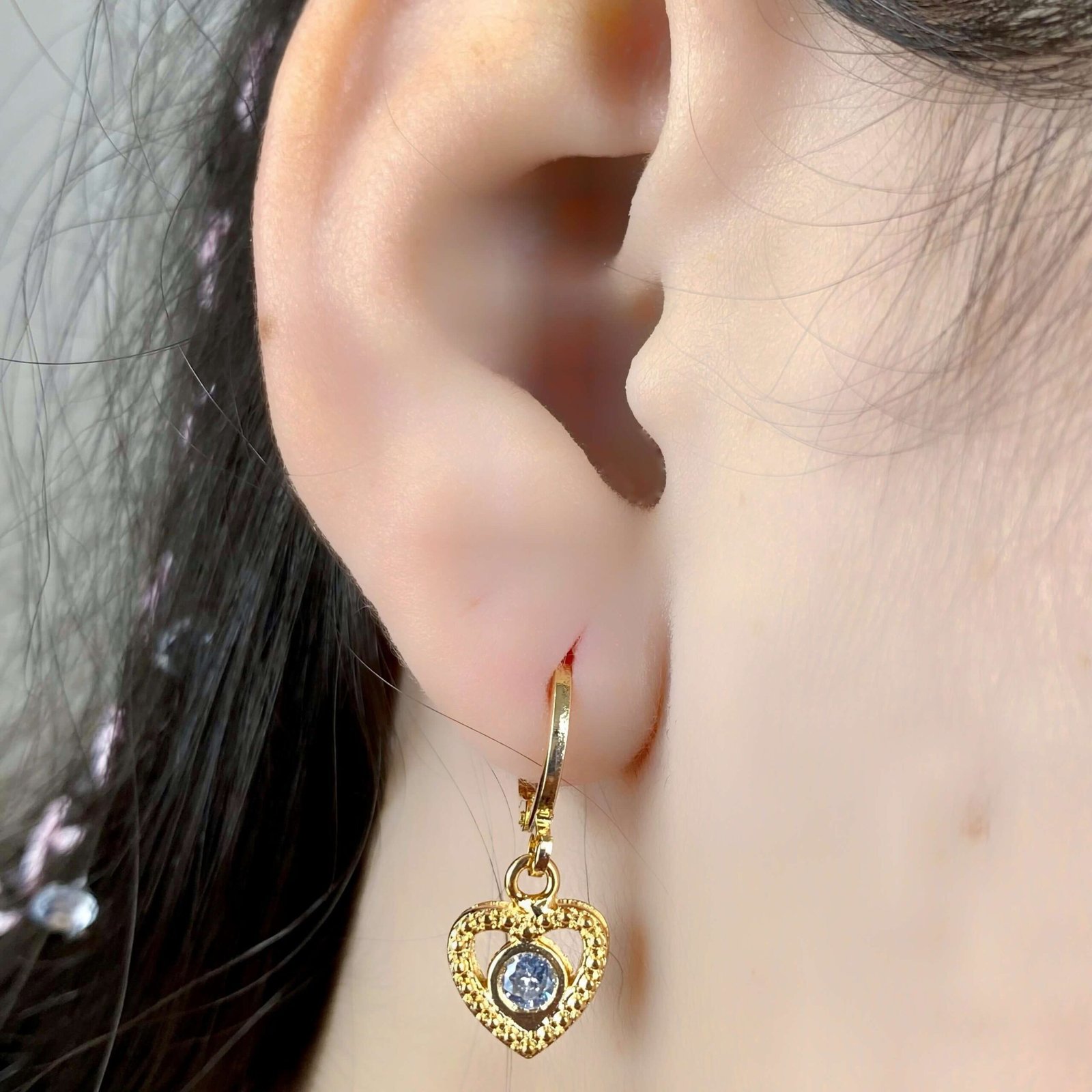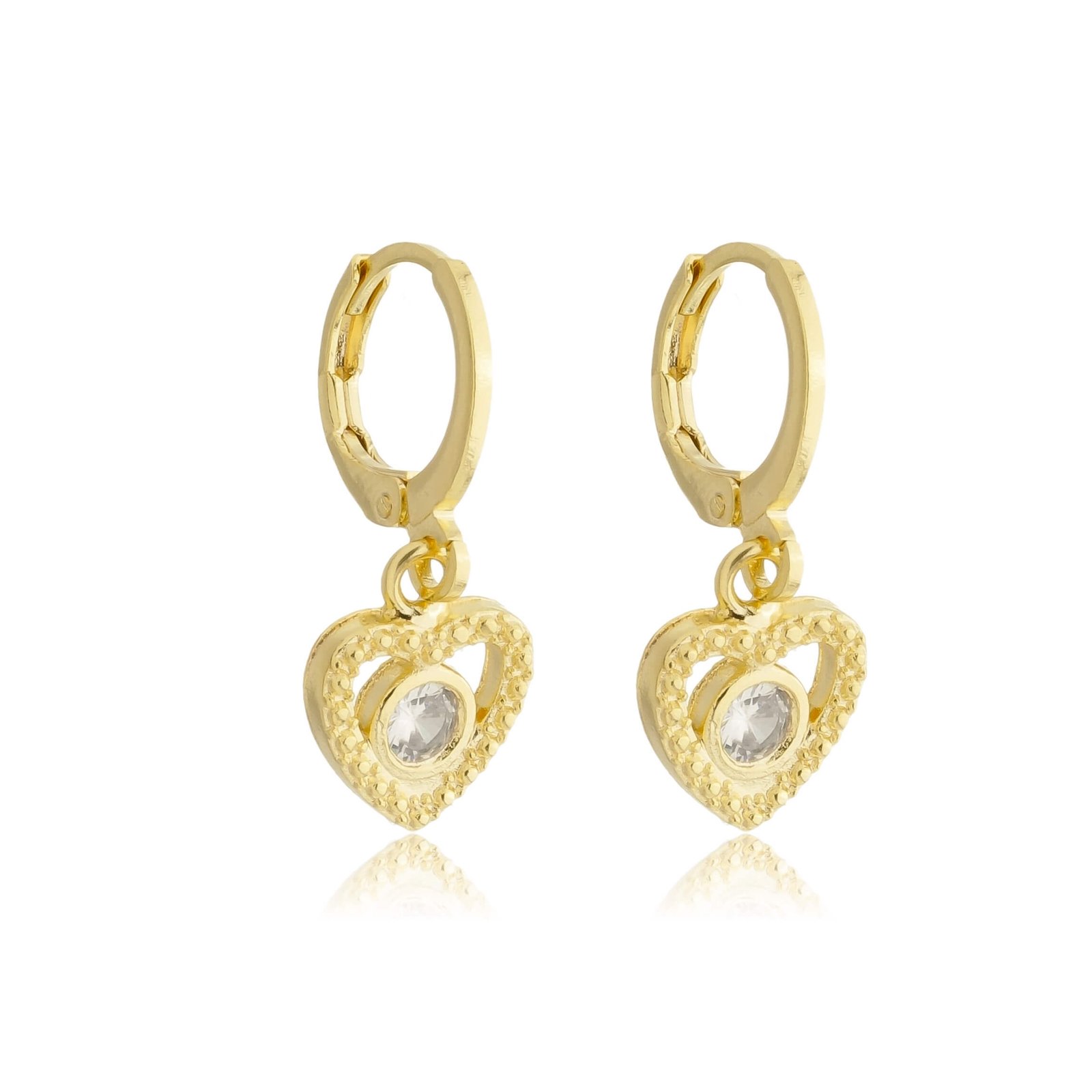 MODELO: Brinco Click Coração Cravejado banhado com 7 milésimos de ouro 18k.