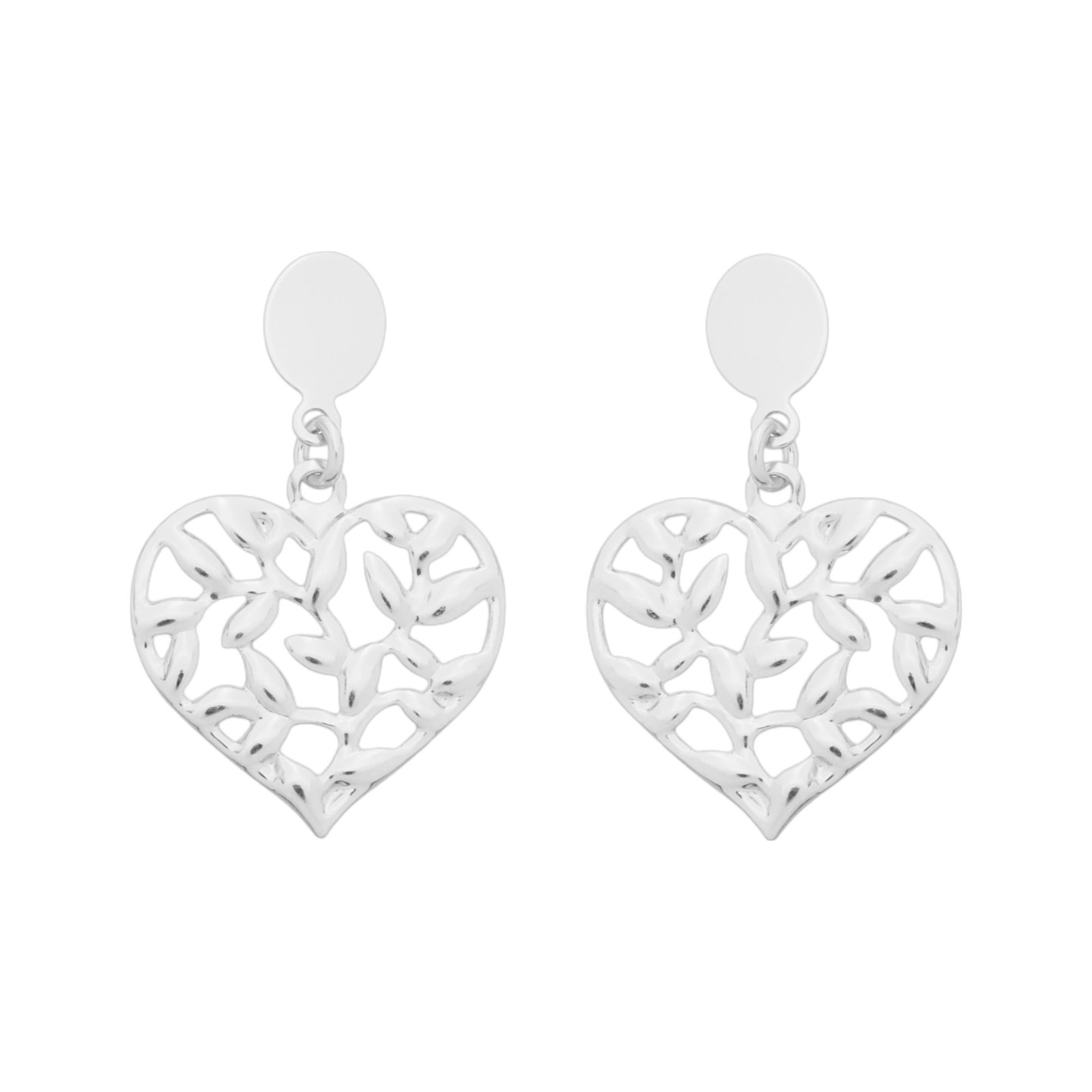 MODELO: Brinco Coração Com Folhas banhado com 100 milésimos de prata 925.