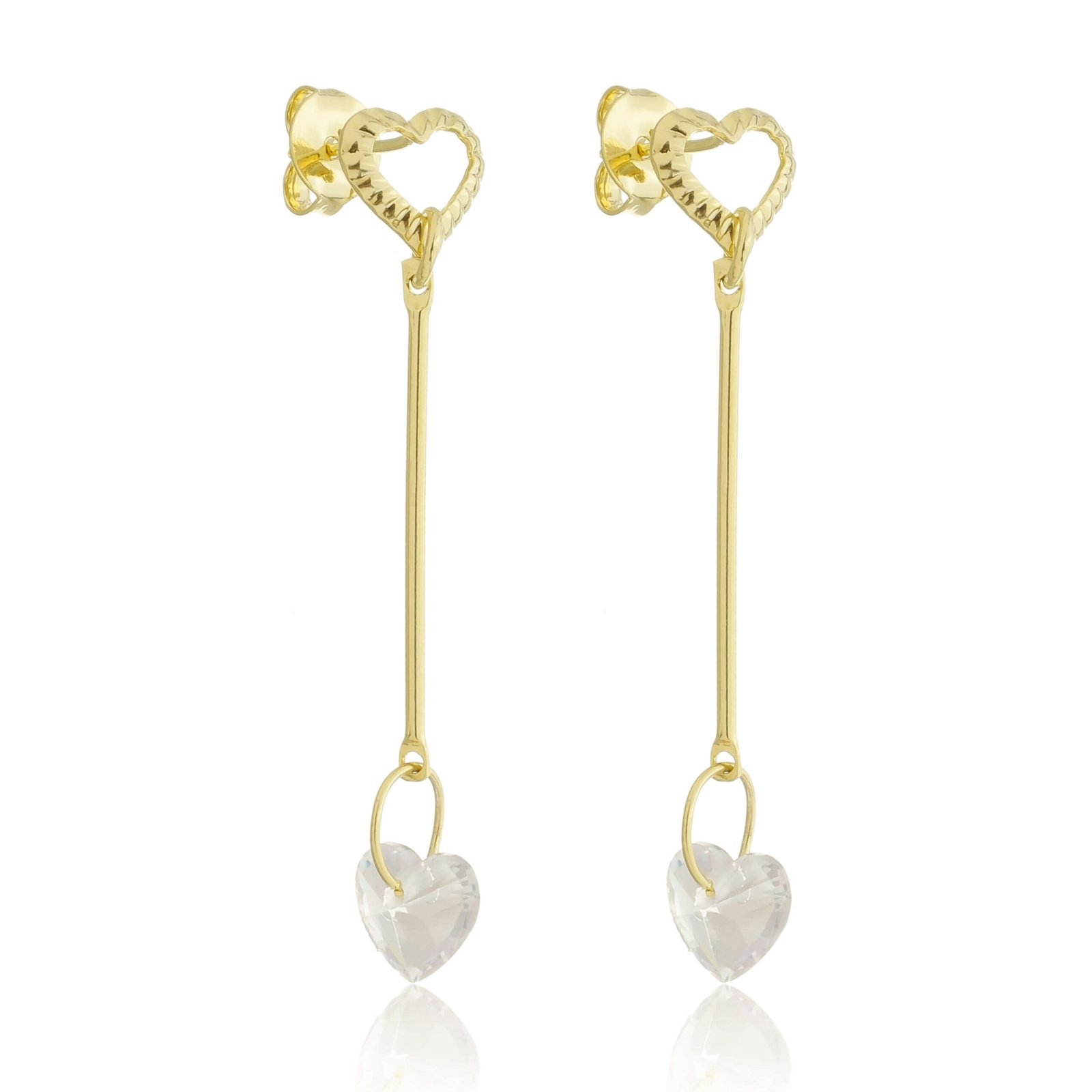 MODELO: Brinco Coração Ponto De Luz Zirconia Pendurado Dourado banhado com 100 milésimos de prata 925.