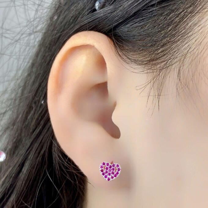 Brinco Coração Zirconia Rosa Banhado a Prata 925